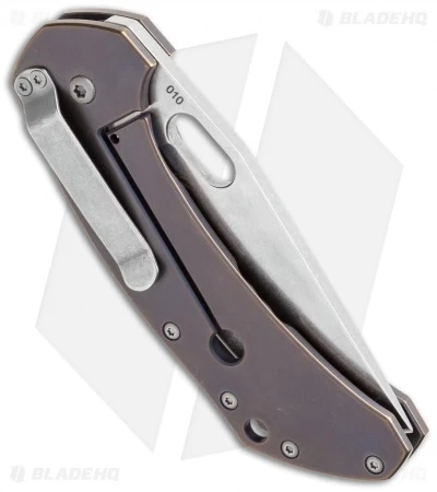The Boker Aurora combines stability and elegance to create a solid, user friendly titanium frame lock knife. It is outfitted with a drop point blade made from 154CM steel in a stonewash finish. The handle is made of thick titanium liners, machined for texture and style, and finish with an impressive blue and brass coloring. A sturdy frame lock mechanism provides a reliable lock up of the blade you can trust during your toughest jobs. Includes a tip-down pocket clip for EDC. The Boker Aurora will make a great addition to your folding knife collection.