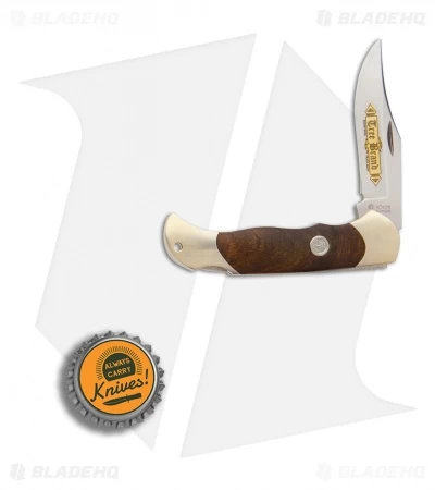 This Boker Boy Scout Classic Gold model sports a compact design with desert ironwood handle scales and nickel silver bolsters. For the Classic Gold series, Boker revived a sense of classic craftsmanship, finishing the blades with genuine classic gold etching that used to be common for high-quality knives.