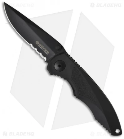 Boker Magnum Stout Liner Lock Knife (3.5″ Black Serr) 01MB408