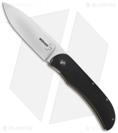 The Exskelibur I from Boker Knives is a collaborative custom design of Mike Skellern and Fred Burger. Mike Skellern, from South Africa, is well known among many collectors in Europe and the U.S. for his stunning pocket knives. The Exskelibur is a true gentleman’s knife with a slim everyday carry design and quality features like blue anodized titanium liner, contoured G-10 scales and attractive red fiber spacers that combine to provide a knife that feels and looks good in your hand. The VG-10 stainless steel blade has a horizontal satin finish with a hollow grind. The protruding blade grind allows a convenient one-hand thumb opening, and acts as a thumb ramp when the blade is open. The reversible titanium pocket clip completes this everyday carry knife. This is the larger version of the Exskelibur II.