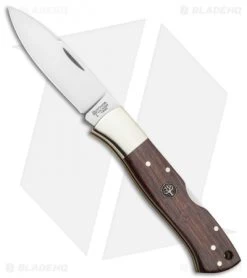 The Boker Mamba offers a classic folding knife design for hunting and everyday tasks. This Mamba features a Desert Ironwood handle and a satin spear point blade. It sports a nickel silver bolster with matching handle pins.