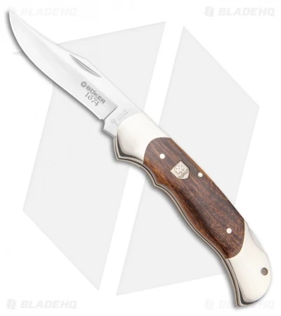 This 1674 Series Boker Optima is outfitted with an Ironwood handle and a mirror finished blade with a plain edge.