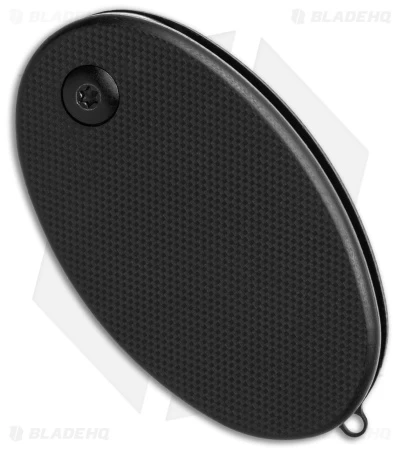 - Textured black G-10 handle with a magnet to hold the scales in place.
