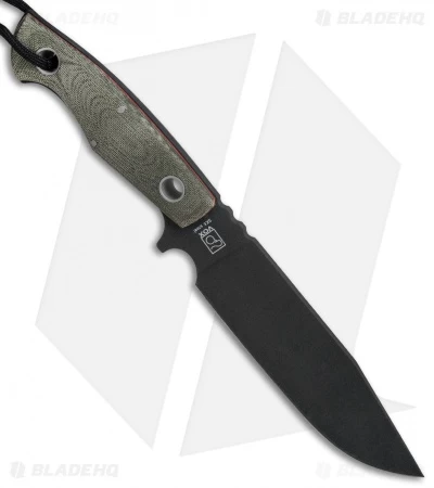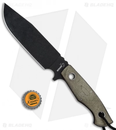 The Boker Plus Rold SK5 is a high performance fixed blade designed by Jesper Voxnaes to serve all of your camping and hiking knife needs. A .20″ full tang comes outfitted with green micarta scales for a super stable build. The blade is made from carbon steel with a durable black coating. Large tubular rivets reduce weight while providing a lanyard hole for accessorizing. Finger grooves and a jimped thumb rest offer multiple grip options for maximized security in hand. Red liners and a black lanyard cord finish off the excellent fixed blade design.