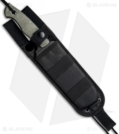 - Carbon steel clip point blade with a black powder coated finish offers strength and durability.