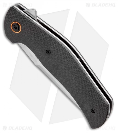The Boker Plus Roundhouse was designed by Canadian knife maker Lorien Arnold and the late Bruce Bingenheimer. It features textured carbon fiber handle scales with stainless steel liners. The impressive drop point blade is made from satin finished D2 steel. A copper-colored pivot collar accents the black handles and hardware. It has a 3D milled stainless steel pocket clip for easy everyday carry.